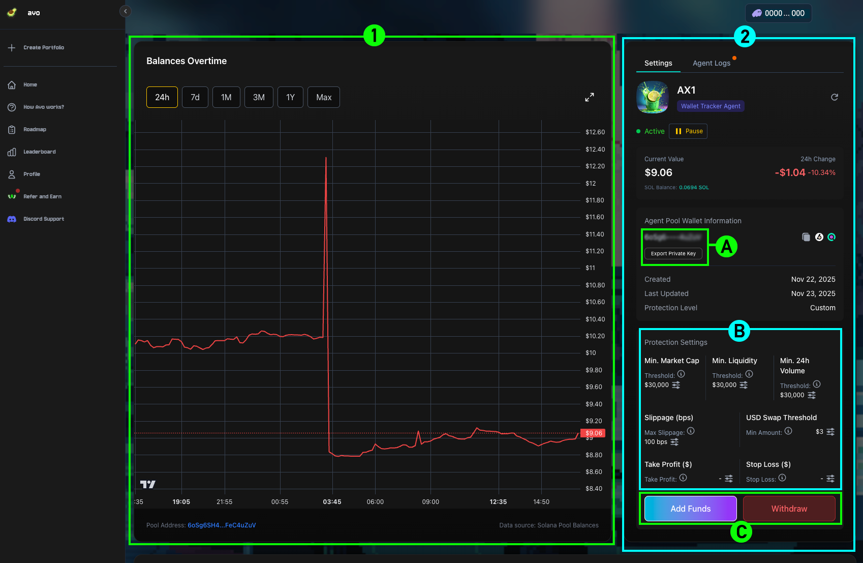 - (C) Fund Management — Add funds or withdraw from the Agent Pool.