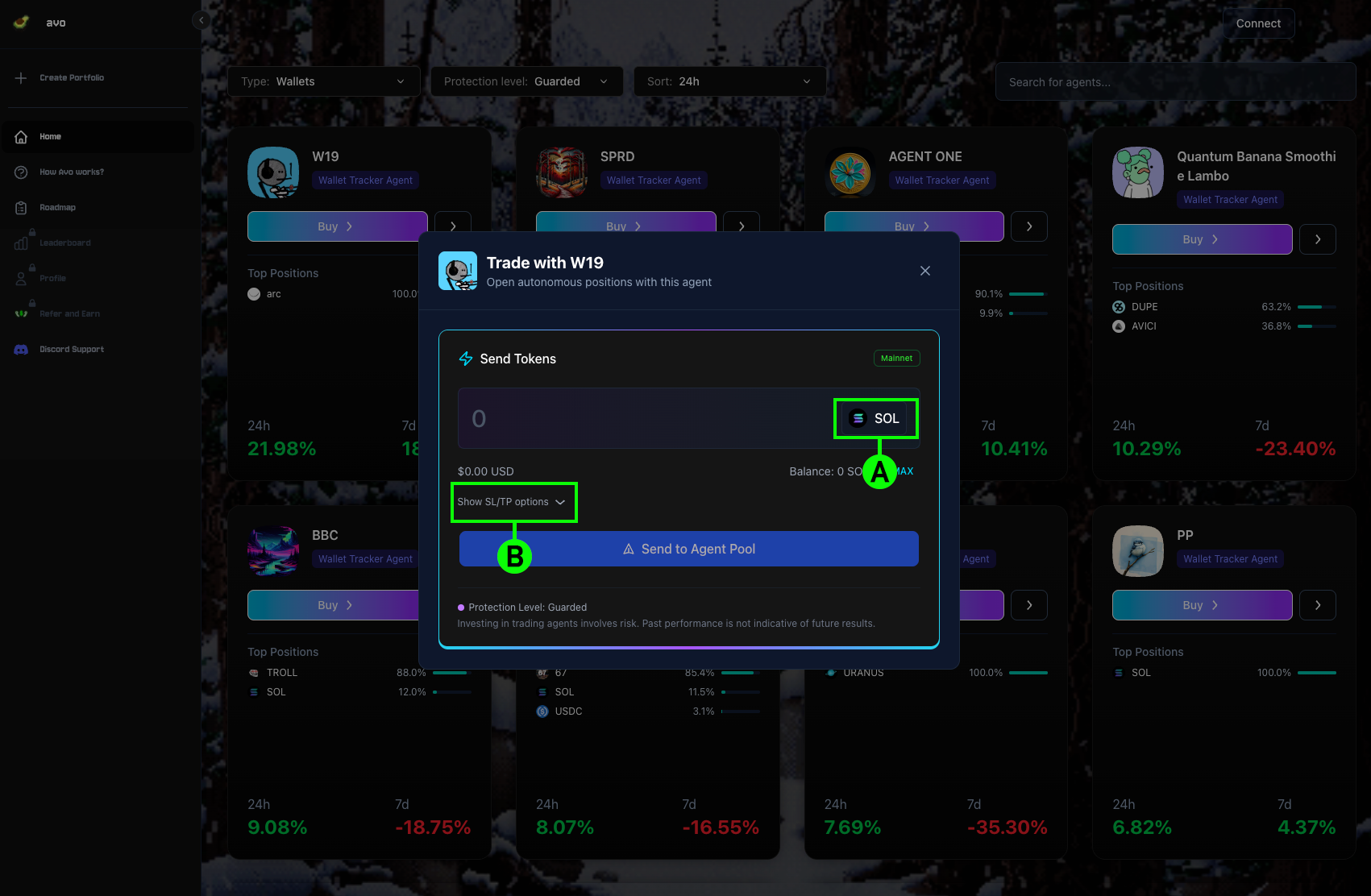 To get started with an agent, you'll need to fund it with $SOL. There are two ways to do this: